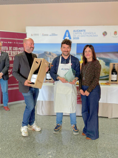 Alicante, 26 de noviembre de 2025.- Insensato ha ganado el primer premio a la mejor tapa de la “Ruta de Taberneros” con su propuesta “Las Torres” que homenajea a una de las tabernas alicantinas de los siglos XVII y XVIII dentro de esta iniciativa en la que han participado 23 establecimientos de la ciudad impulsada por el Patronato de Turismo Alicante City&Beach, Turisme Comunitat Valenciana y el Consejo Regulador Denominación de Origen Vinos de Alicante.
