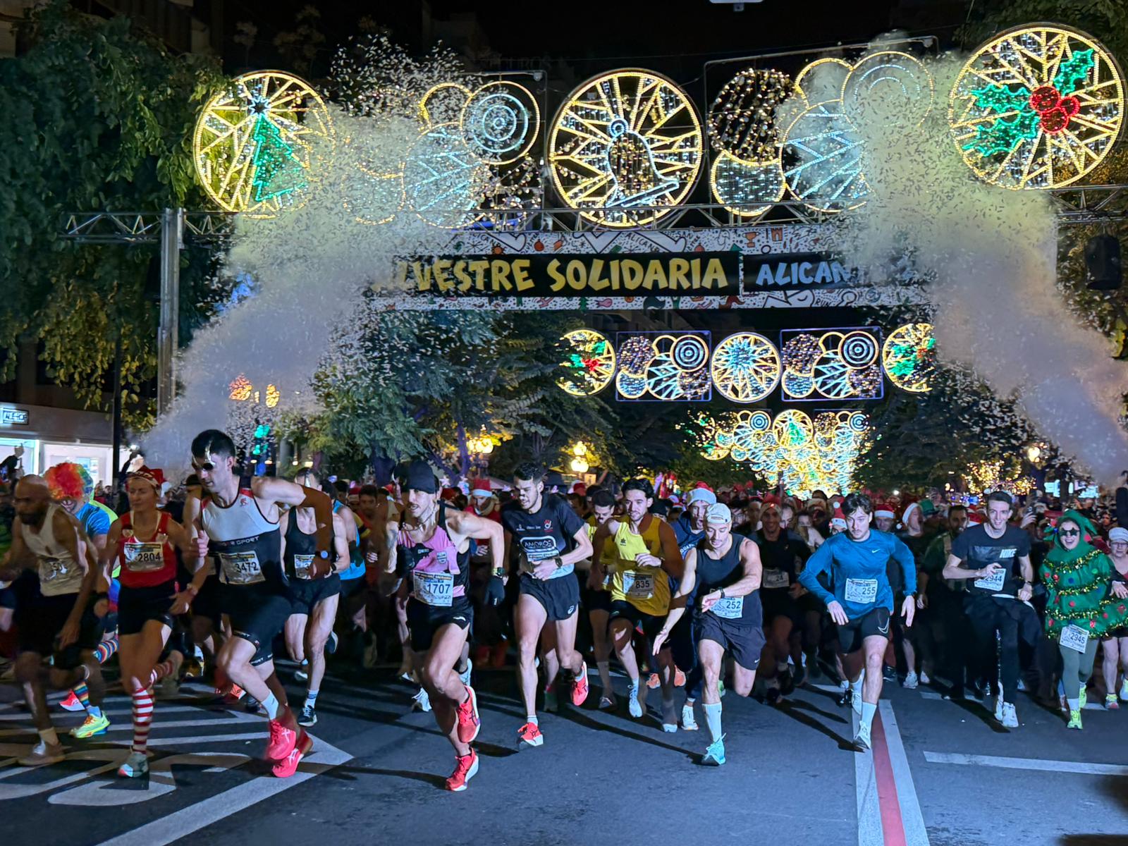 Alicante, 27 de diciembre de 2025.- Más de 5.000 corredores inundaron de deporte, ingenio y humor las calles del centro de Alicante en la tarde-noche del pasado viernes 26 de diciembre durante la celebración de la San Silvestre solidaria, que volvió a superar sus mejores registros de participación. “Es una carrera completamente consolidada ya en el calendario navideño de Alicante y que cada año va a más, en medio de un gran ambiente, por lo que vamos a seguir apostando por ella y por su crecimiento en los próximos años”, destacó el concejal de Deportes, Manuel Villar.