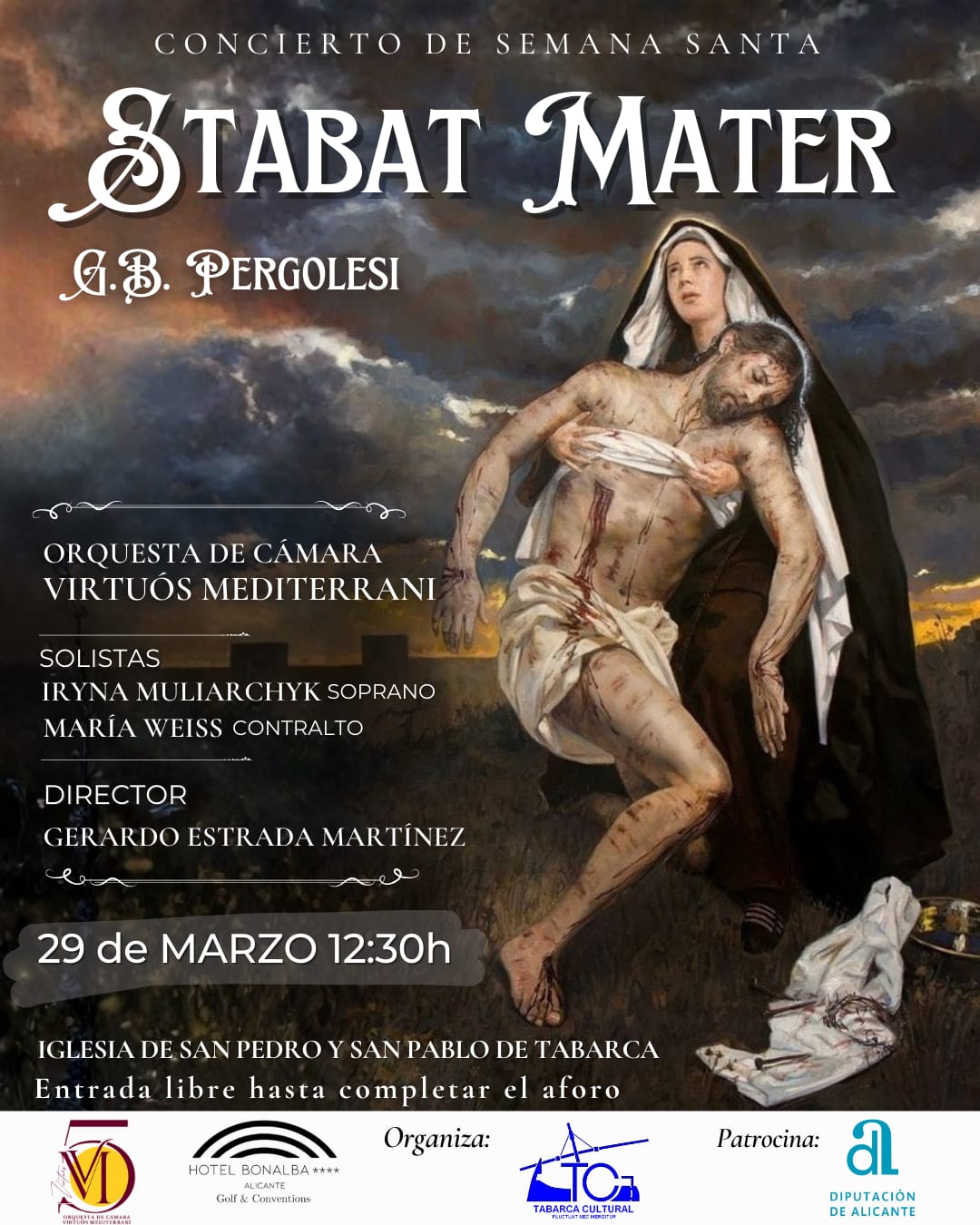 La Iglesia de San Pedro y San Pablo abre sus puertas para acoger el célebre «Stabat Mater» de G.B. Pergolesi, organizado por la Asociación Tabarca Cultural.